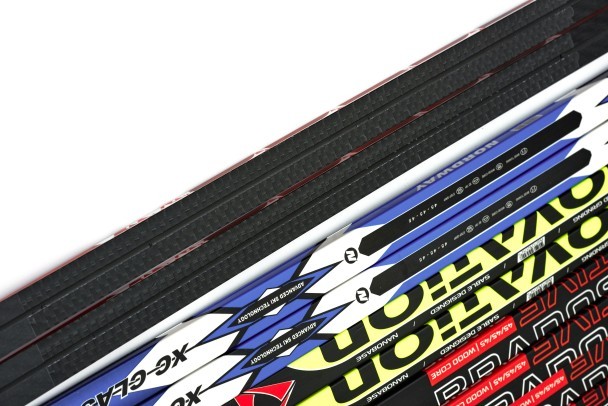 «Начинка» лыж — проклеенная, облегченная клином с воздушными каналами древесина. Лыжи укреплены слоем сверхпрочного волокна в области колодки.