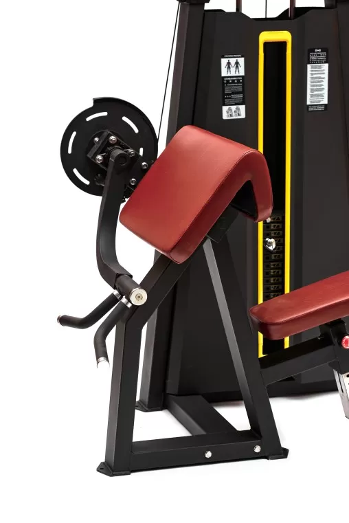Тренажер Бицепс-машина — оборудование для комфортной и безопасной тренировки двуглавой мышцы руки. Рама тренажера изготовлена из прочной стали в графитовом цвете. Нагрузка в тренажере обеспечивается при помощи грузоблока, который состоит из 16 плит с суммарным весом 80 кг. Грузоблоки закрыты металлическим кожухом с обеих сторон. На тренажере предусмотрен штыревой фиксатор для удобной фиксации нужного веса.